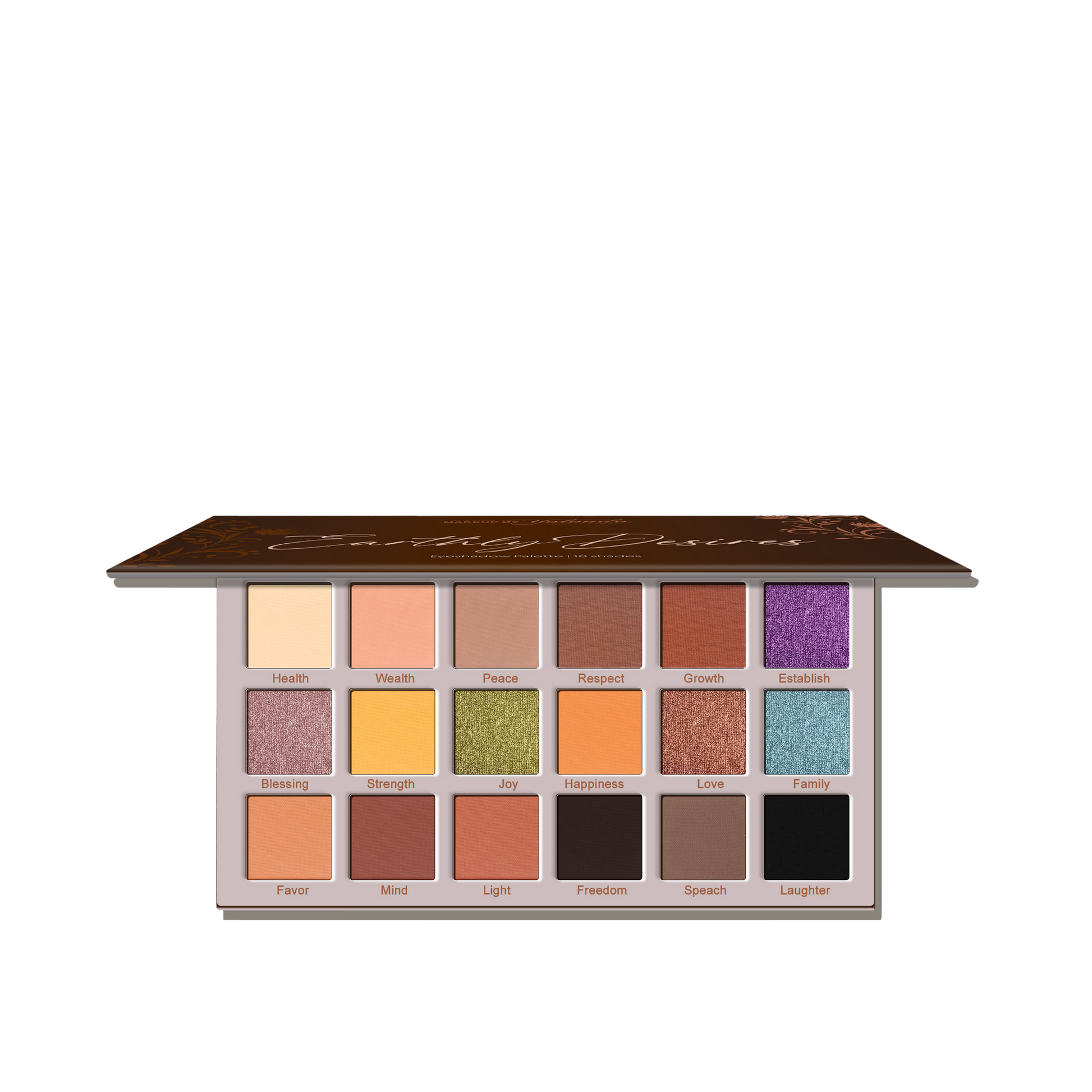 The Earthly Desires Eyeshadow Palette is filled with 18 buttery, easy-to-blend, extremely pigmented shades. With this eyeshadow palette you can create mind blowing neutral looks. The perfect everyday palette to create looks for the office and more. You can call her the all occasion palette.