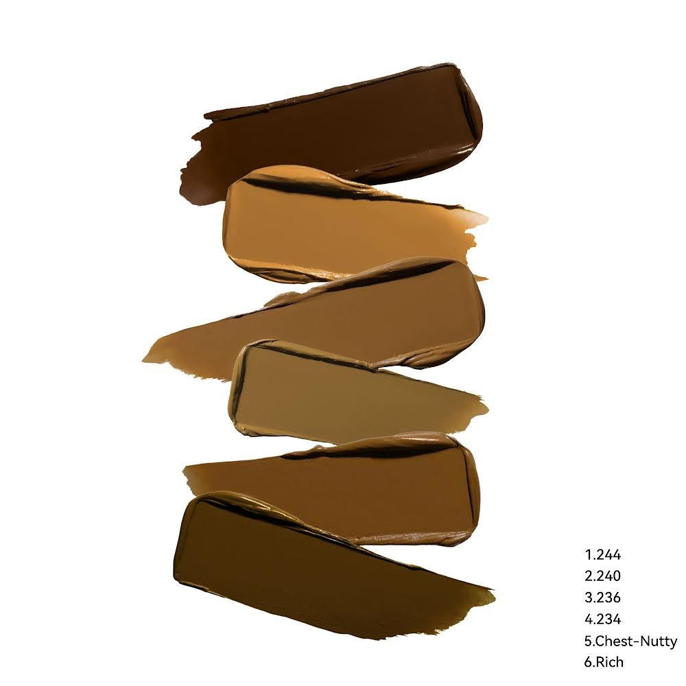 With an extensive range of 40 shades available and 3 palettes featuring 6 shades each in light, medium, and dark tones, this concealer caters to a diverse range of skin tones, guaranteeing a seamless match for every individual. The high-quality formulation effortlessly blends into the skin, providing a smooth and even finish.