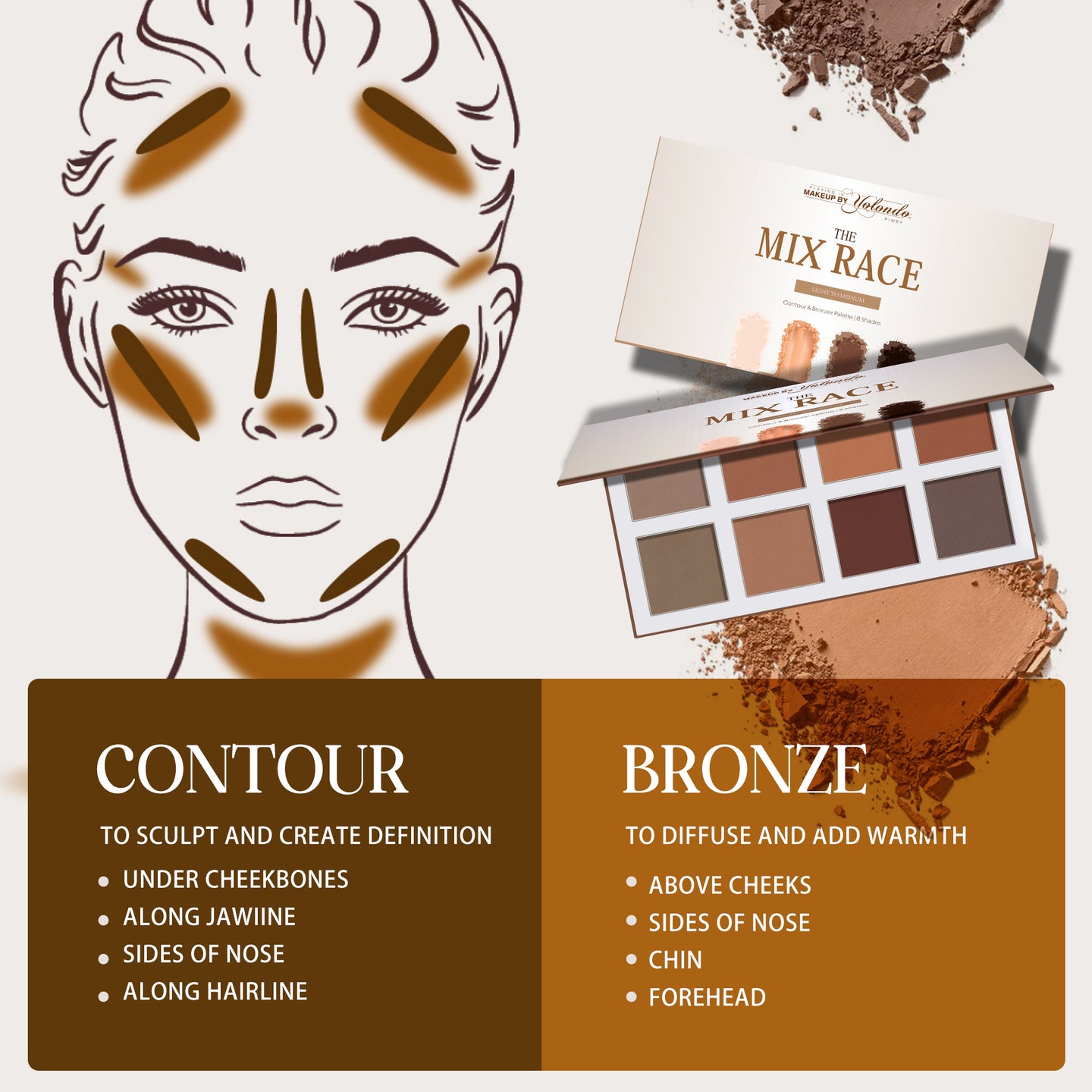 The Mix Race Contour and Bronzer Palette is a must-have for achieving a sun-kissed and sculpted look. These two palettes is specially designed for individuals with light to medium and medium to dark skin tones.